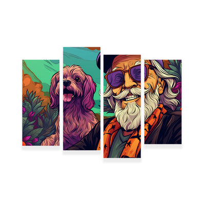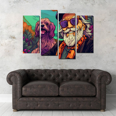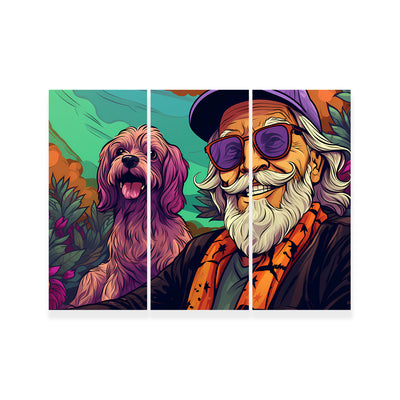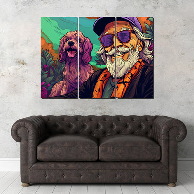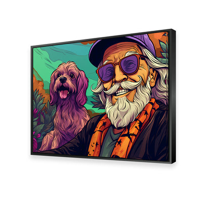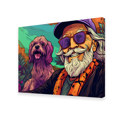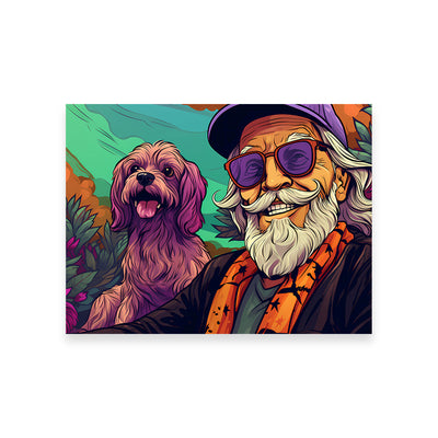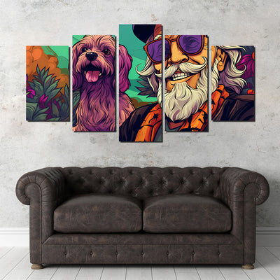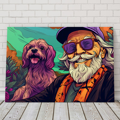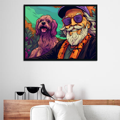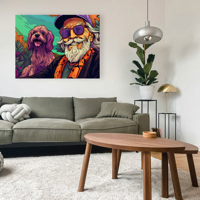 Hipster Grandpa and Dog Wall Art