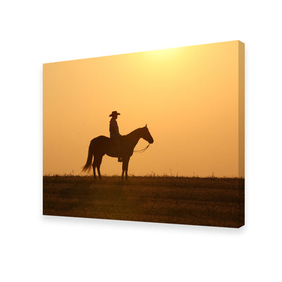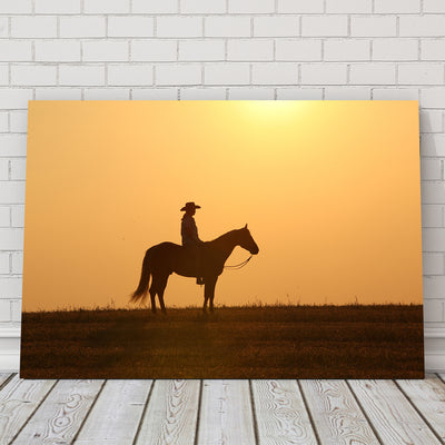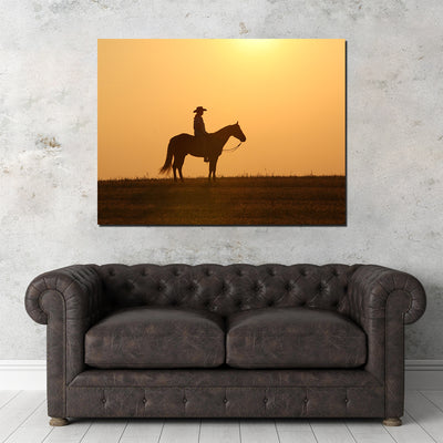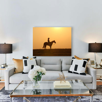 Horse & Cowboy at Sunset Wall Art