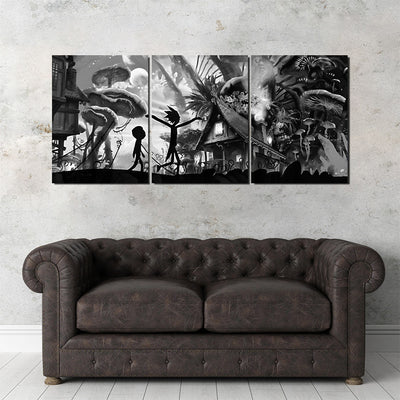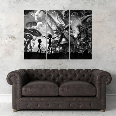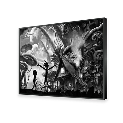 Mushroom World Rick and Morty Grayscale Wall Art