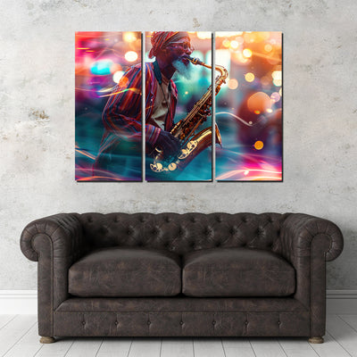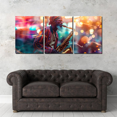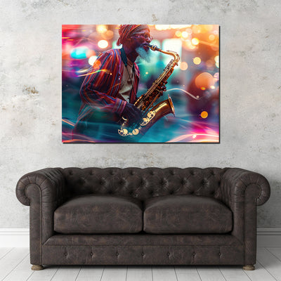 Saxophonist in the City Lights Wall Art